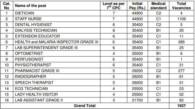 Railway Recruitment Boards have released the notification for recruitment to posts of various Paramedical Categories. The total posts are 1937 and details of posts are given below.