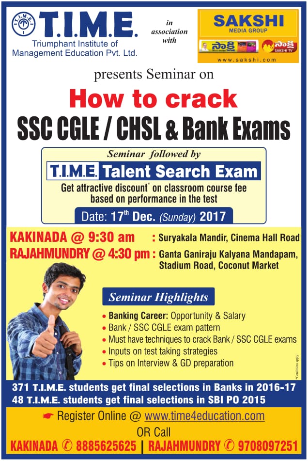 Kakinada & Rajahmundry - Bank + SSC Seminar and Scholorship Test - 17th December