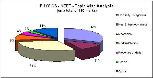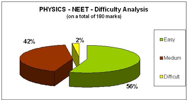 An almost evenly distributed paper between class XI and XII syllabii, it had very few difficult questions or questions with lengthy calculations. A student with basic subject knowledge and with some insight into applying the basic rules to problems should be able to score above average marks. Topic wise analysis and difficulty wise analysis for the Physics part of NEET 2018 are provided below: