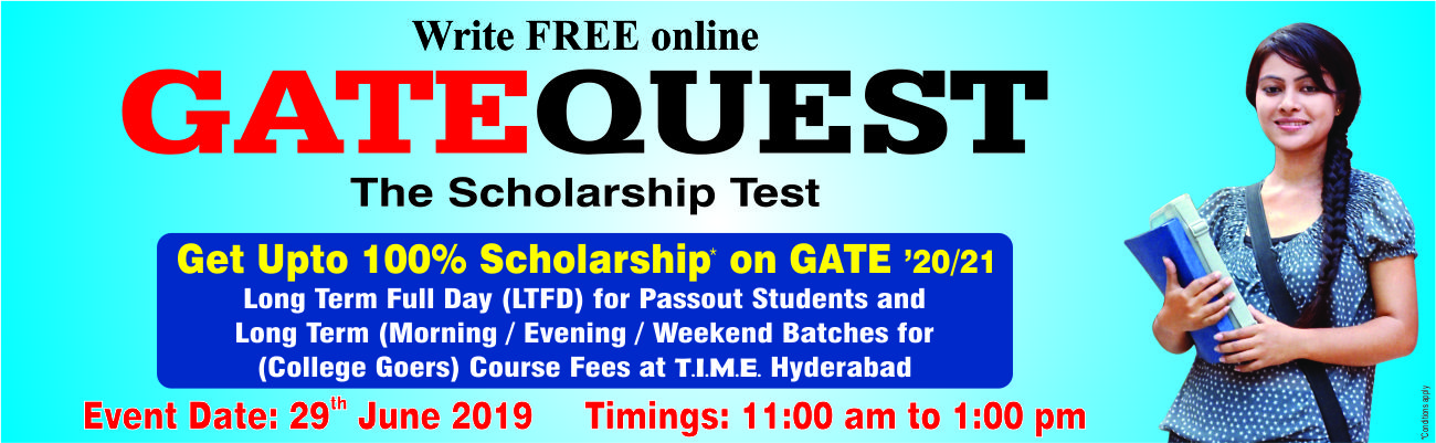 Get Upto 100% Scholarship on GATE Long Term Full Day (LTFD) for (B.Tech - Passout Students) and Long Term (Morning / Evening / Weekend Batches for B.Tech - III,IV Year Students) Course Fees at T.I.M.E. Hyderabad