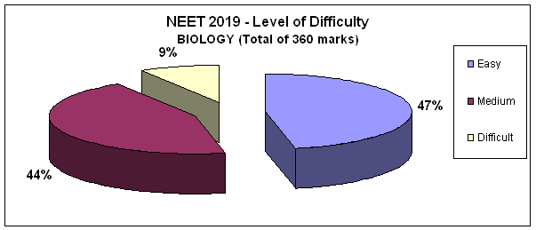 Biology part of NEET 2019 has been the intriguing part of the three subjects. Having said that, one should also mention that, almost all questions were based on NCERT Texts. Few questions (constituting about 9% of scores) were highly difficult and few more were slightly deviating but linked to the concepts in NCERT.