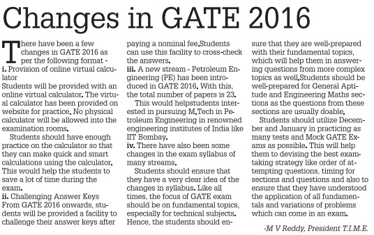 Changes in GATE 2016